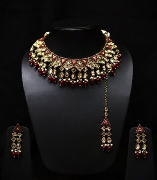 An intricate diamond-look collar set with layered marquise motifs and matching drop earrings.